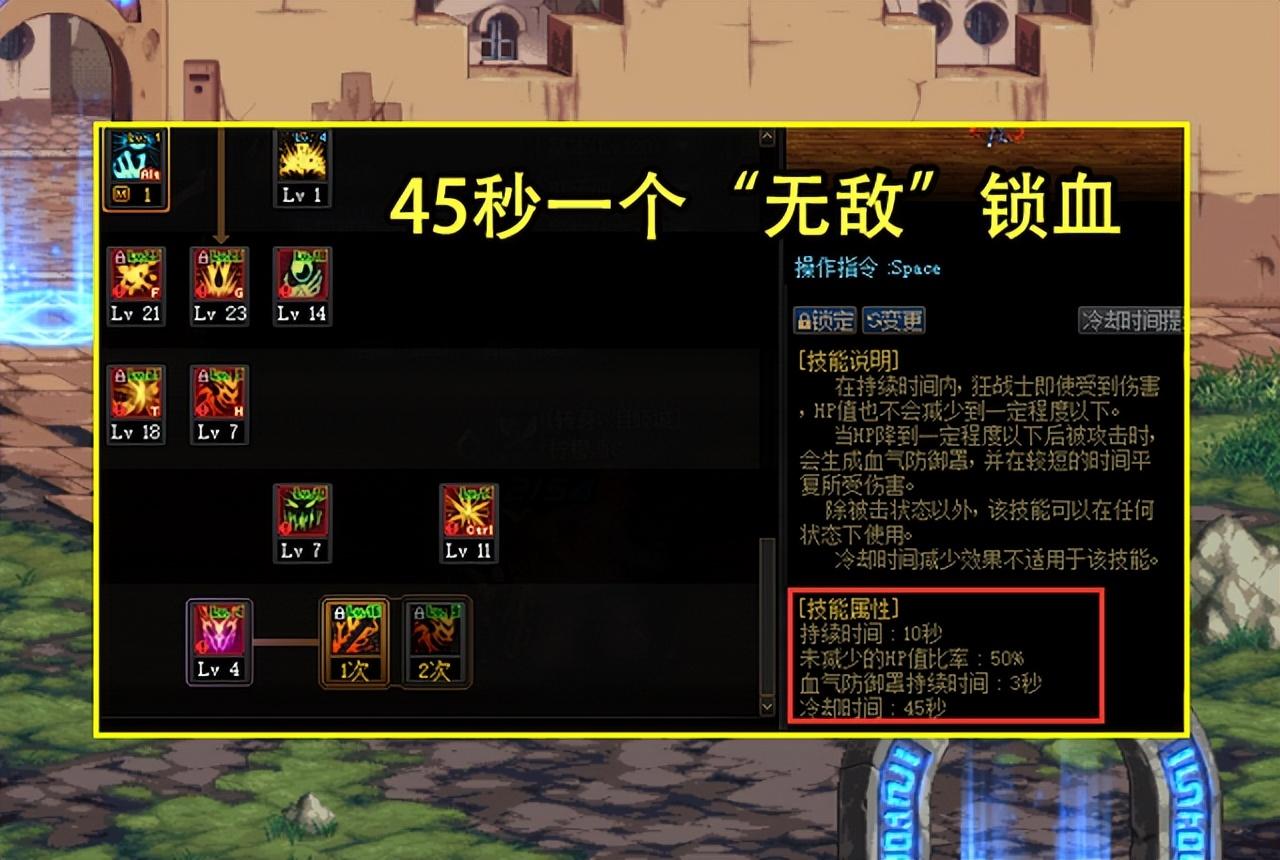 狂气涌动简称“锁血”,在按空格施放后,有10秒的“无敌”时间,技能CD为45秒,也就是说玩家每45秒钟,就能用一次保命技能,这在巴卡尔团本中,关键时刻施放可以保住不死 。