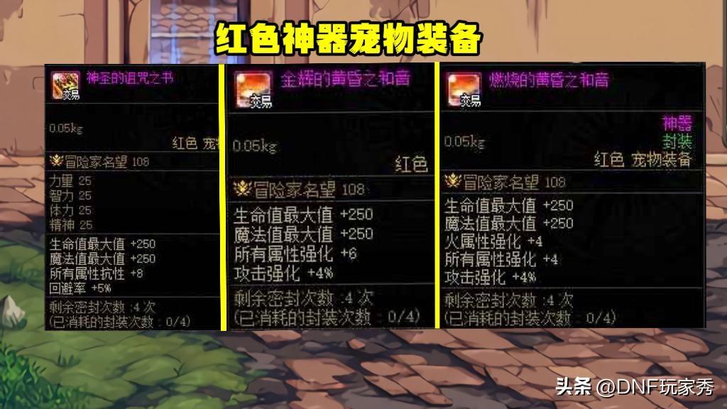【辅助红色神器】:四维25、HP和MP最大值+250、属抗+8、回避率+5%。