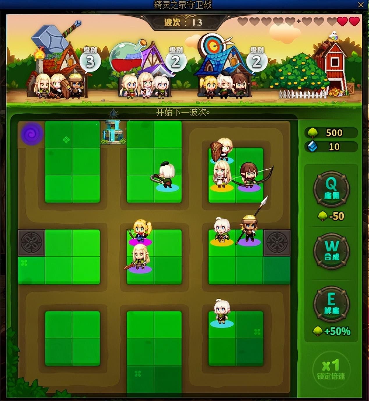 玩法很简单,召唤随机佣兵阻挡怪物,2相同的佣兵可以随机合成高一级兵种,最高达到史诗佣兵,强度越高越容易守住泉水。