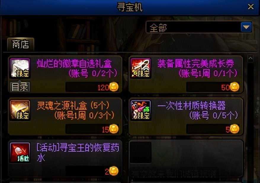 通关副本,随机出现黑商加百利,可购买如下道具: