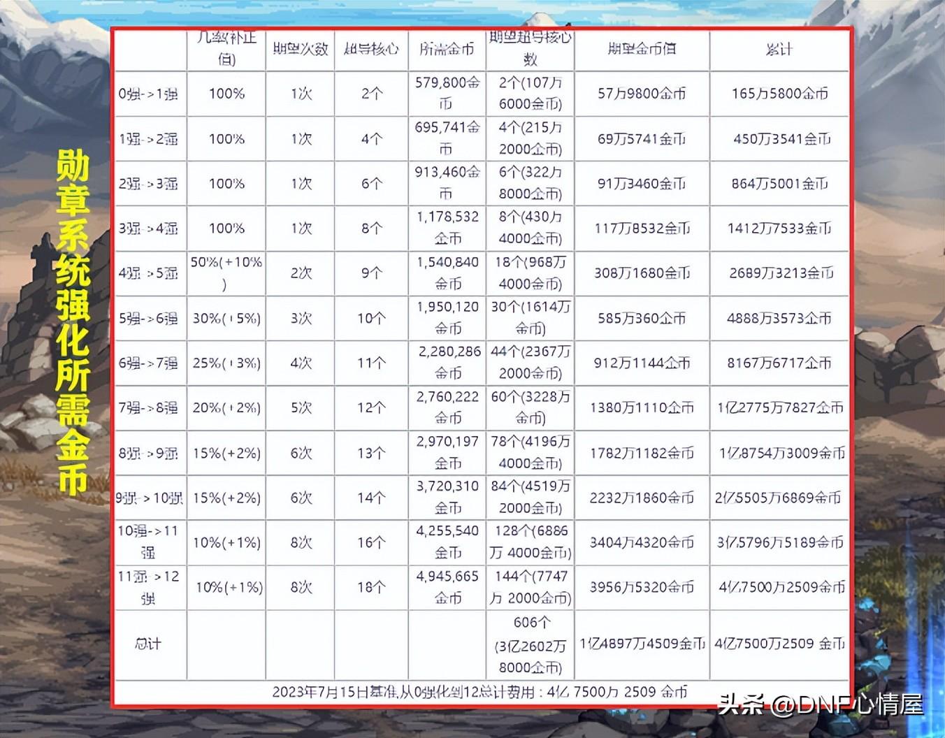 由于韩服“代号·盖波加”副本,已经推出一段时间了,根据调研分析,把勋章从0强化到12,需要的金币费用,超过了4.7亿左右。
