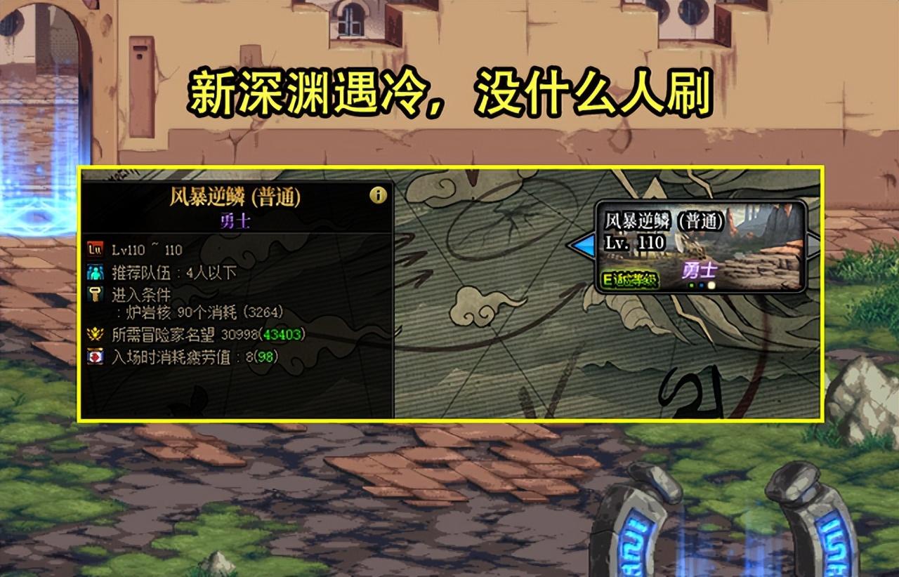 风暴逆鳞每日模式是110版本的“新深渊”,这里名望要求只需30998,进图和100版本深渊一样也是消耗8点疲劳,入场材料为90个炉岩碳,只是让人感到奇怪的,新深渊在加入之后就遇冷了,根本就没多少人刷。 这又是什么原因呢?