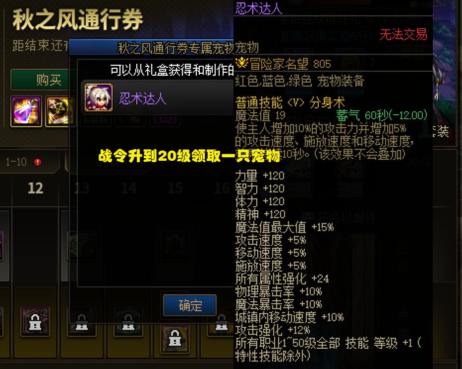 【3,战令宠物】四维+120,所有速度+5%,所有属强+24,城镇移速+10%,攻击强化+12%,lv1-50技能+1,所有技能冷却-5%!