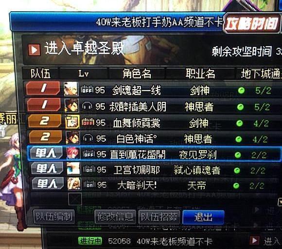 玩家:练9个奶妈或者奶爸,然后找个团py你的剑魂,天天满疲劳吃药深渊,找个卢克金团。