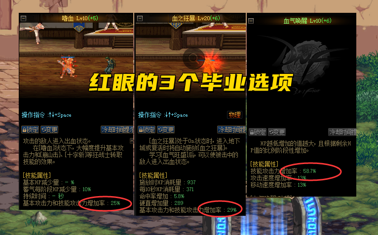 红眼更是夸张,竟然有3个毕业选项“血气唤醒、血之狂暴、嗜血”,所以某种程度上说,红眼的白金毕业率是最高的。