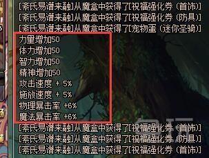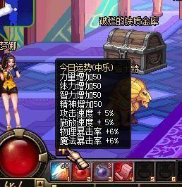 抽到了一个中乐,四维+50、攻速施放5%、双暴6%