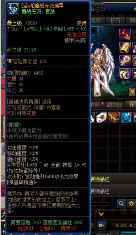 不过这次新版本更新后,虽然普通的魔战肩被和谐了,基础精通攻击力仅增加150%。但这个带了活动两个字的魔战肩却并没有被和谐,依然是提升150%攻击力,也就是提升1.5倍的攻击力。不得不说策划是真的会玩文字游戏,一个是增加150%的攻击力,另外一个是提升150%的攻击力,我想很多玩家还没有搞明白吧。