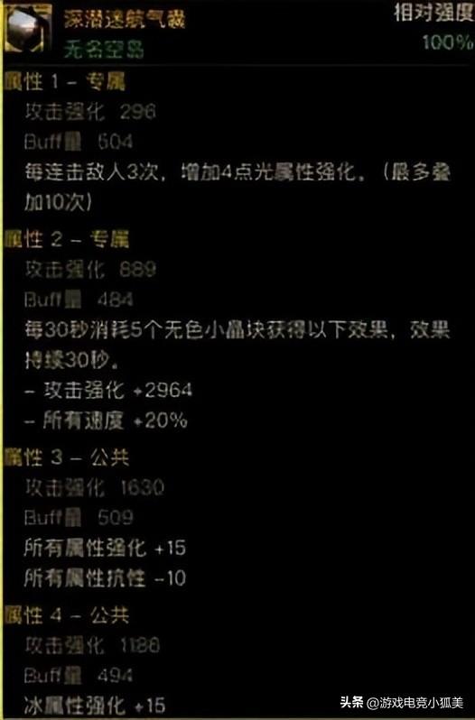 第三件、自定义史诗。分为2个流派,药王护肩和攻速护肩。区别就是其中一个词条是消耗品Buff50%和连击40属强、攻击强化2964和20%攻速,其余的词条都是15属强。这件史诗是神豪专属,毕竟四词条完美自定义太难了。