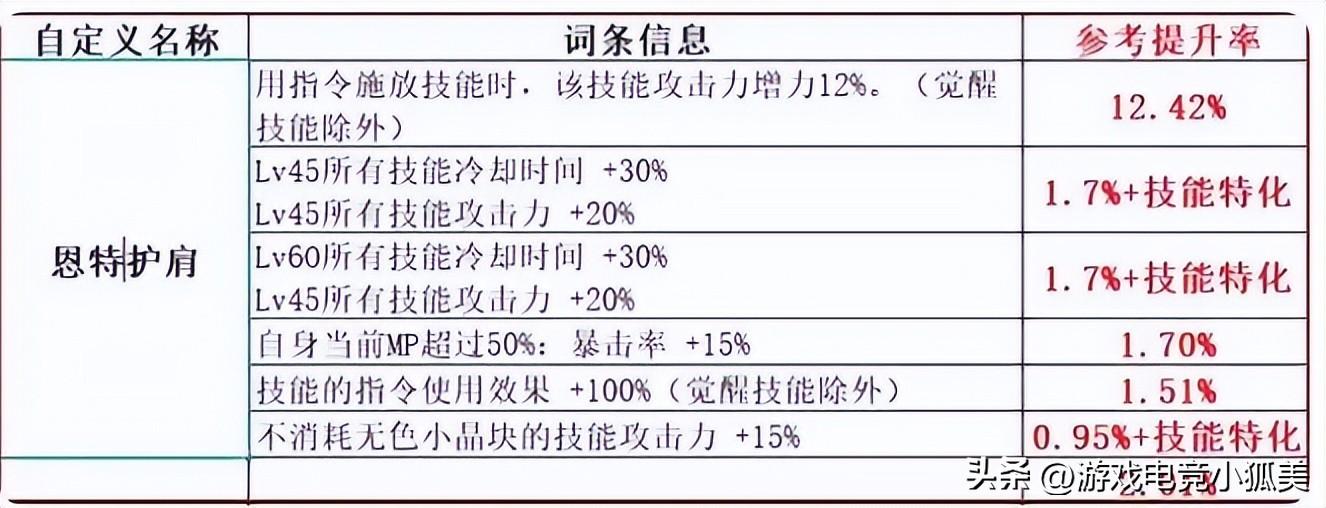 第三件、恩特护肩。 这个史诗的核心词条是手搓12%技攻,所以被称作手搓护肩。属于操作大神专属,实际强度和前两个不分伯仲。