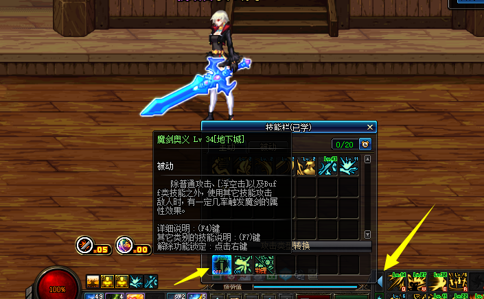 对了想要看到剑宗的原来武器外观,可以通过技能栏上的小三角符号,将魔剑奥义关闭,这样就可以隐藏掉效果了。