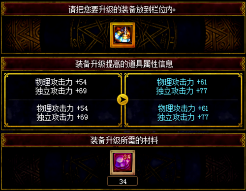 由于小编的材料有限,还差1级就是灭:寂静之斗气耳环,但是我们可以看到下一级的属性是物理攻击力+122,独立攻击力+154。