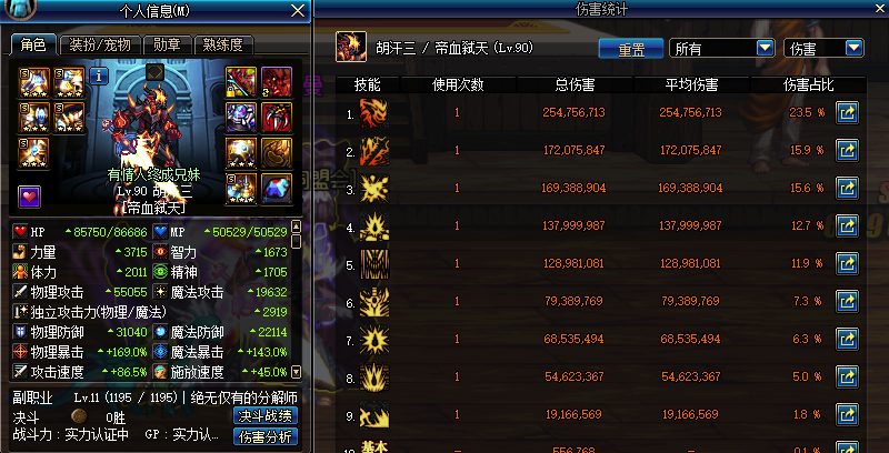 红眼作为目前的一线职业,伤害本身就不错,如果没有史诗套,红眼无疑最适合做艾肯套,就算没有恍惚套三神器,伤害还是不错的,在吃三药的修练场伤害测试中,最高的二狗能达到4亿,主要是魂殇伤害不稳定,所以最高一次伤害是这样的。