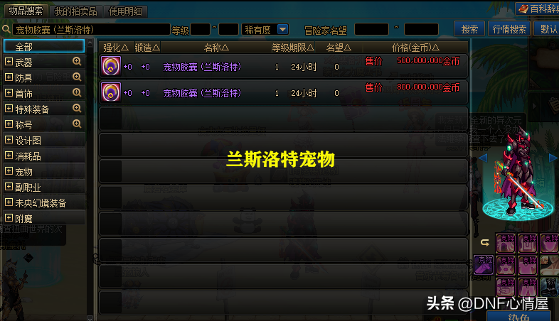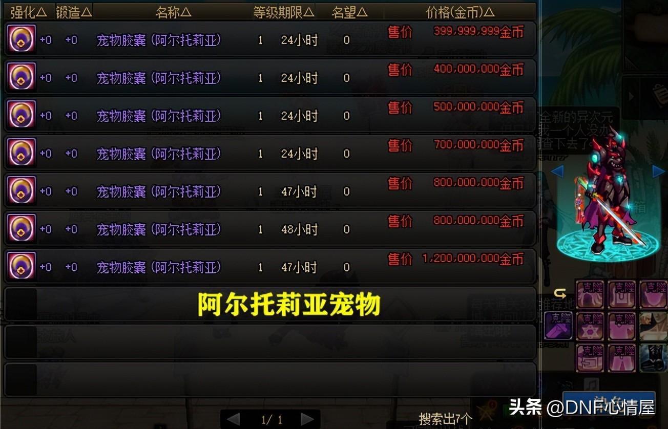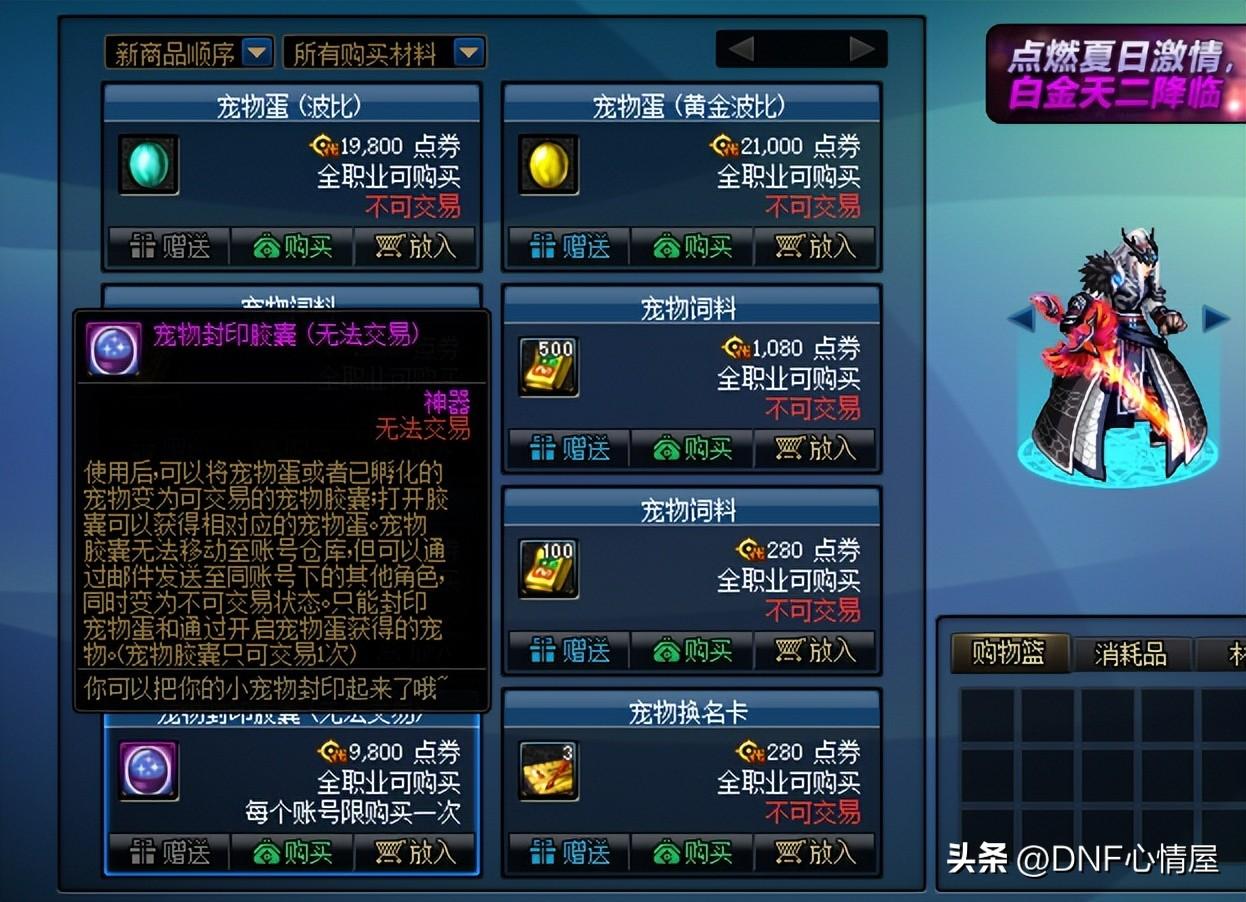 DNF能交易的宠物推荐 价格便宜非常适合小号