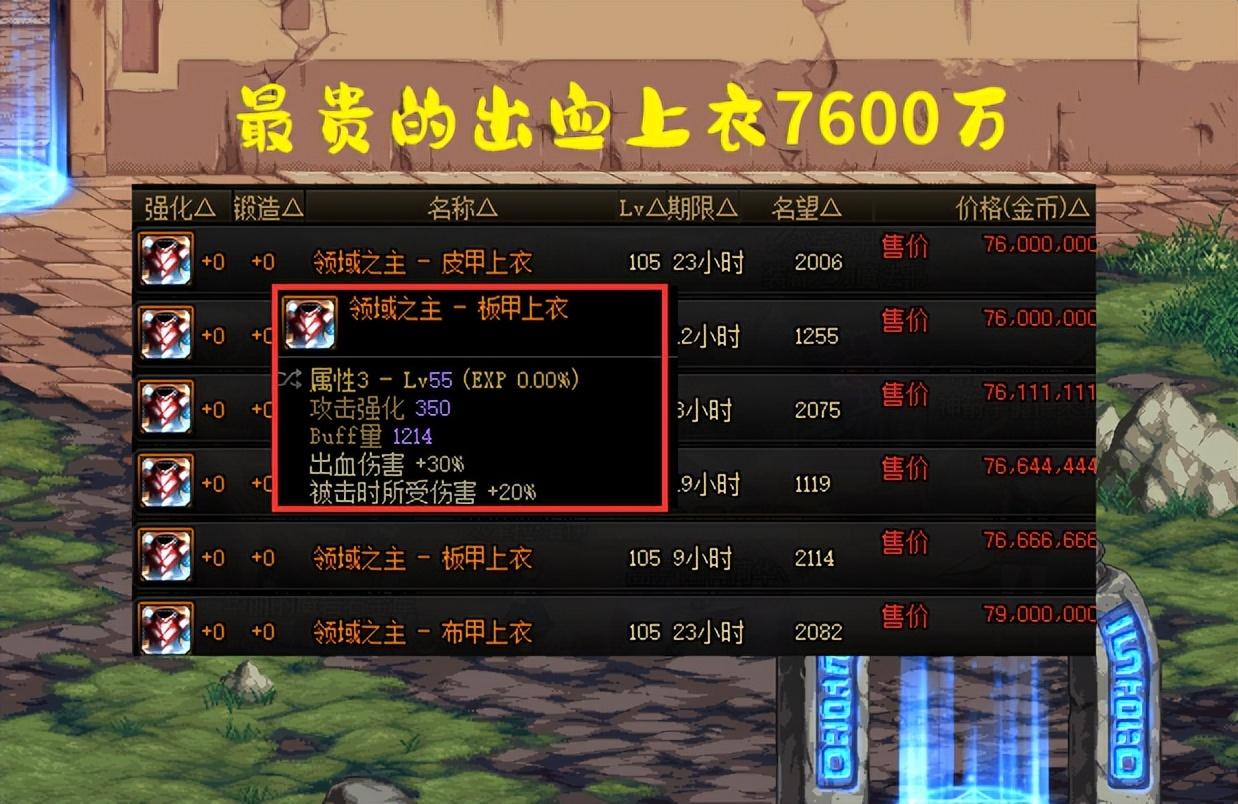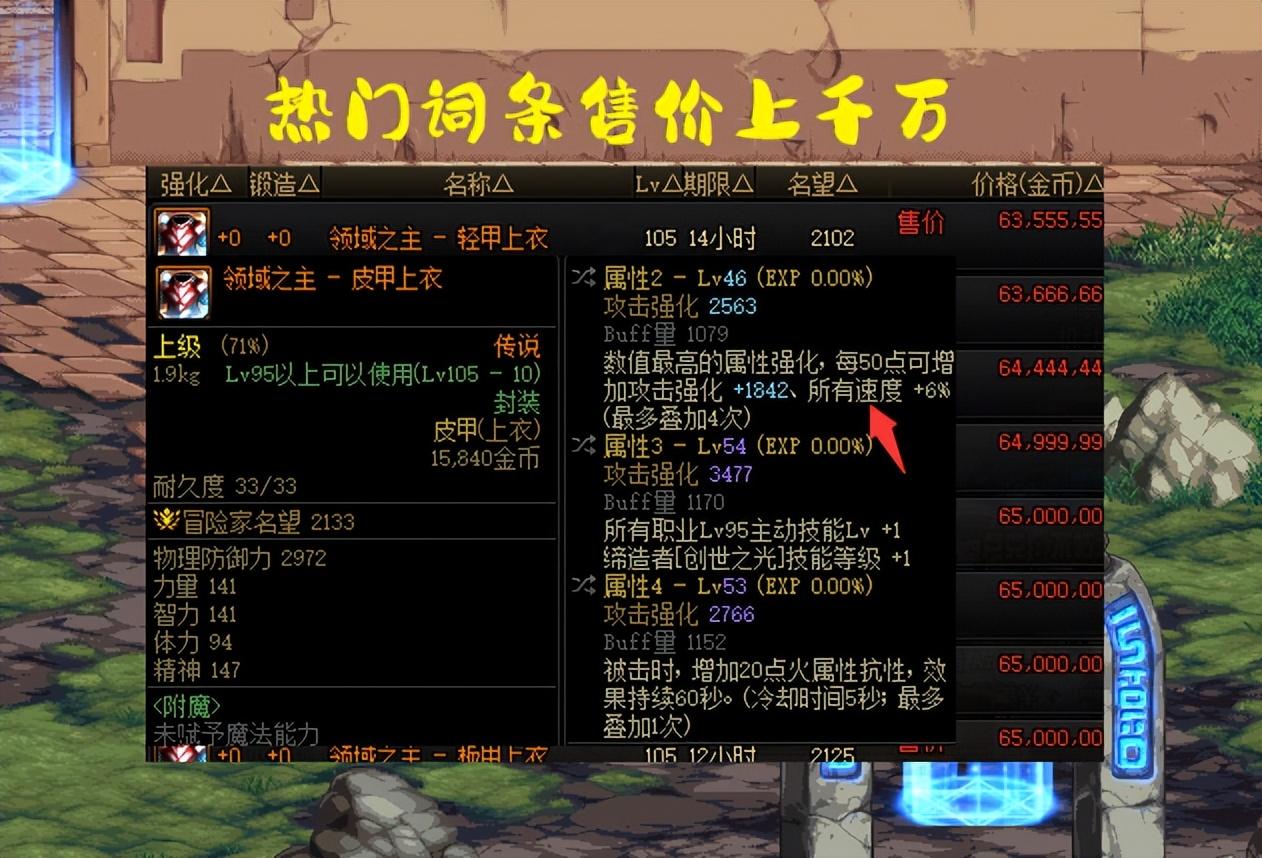 其中最值钱的就是“上衣”,如果运气再爆棚一点开到了热门毕业词条,那恭喜大家摸金成功了,“直伤7%技攻”售价1700万,“低血8%技攻”售价4900万,“攻击强化+24%三速”售价6000万,“30%出血”售价7600万!