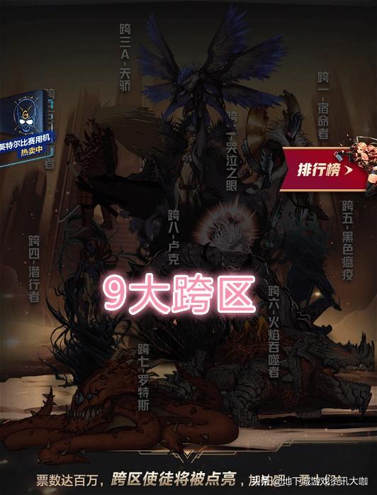 因国服玩的人数颇多,从而分为九大跨区,每个跨区队伍争夺漩涡竞速第一名,晋级总决赛。目前游戏中,跨区服务器已经变成使徒名字,跨一宿命者卡恩、跨二哭泣之眼赫尔德、跨三A天骄普雷、跨三B征服者卡西利亚斯、跨四潜行者希洛克、跨五黑色瘟疫狄瑞吉、跨六火焰吞噬者安徒恩、跨七罗特斯、跨八卢克。每个大区涵盖的地方不同,也就导致人数不一样,就这次投票助力来说,跨八成鬼区,跨六人数最多!