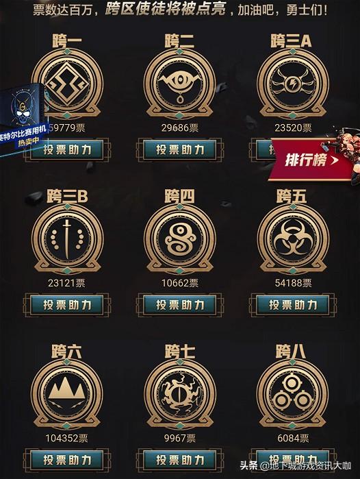 心悦联合地下城组建了一个集结吧勇士,进行跨区投票助力,话不多说,我们直接来看一下9个跨区的票数吧!