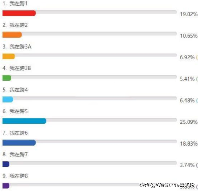 跨六大区人数遥遥领先,都已经是跨五的一倍,作为“江浙沪”大区,可见,也无法跟跨六比啊。跨六因有一些知名的主播,比如旭旭宝宝,从而吸引了一波人。生活在跨七和跨八这样的鬼区,在打漩涡团本时,都恐怕很难找到队伍,大部分都在单机。不知道勇士们,你是属于跨五和跨六这两大神区,还是跨七跨八鬼区?