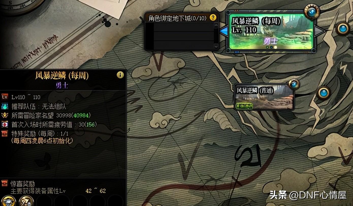 1.12新春版本,风暴逆鳞地下城改版,划分为普通和每周两种模式。每周模式的风暴逆鳞,新增了勇士难度,词条等级为42~62,实际意义不大。