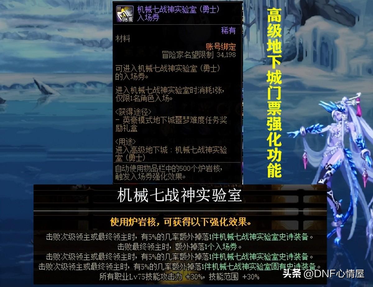 在1.12版本,高级地下城入场券能强化,需要消耗炉岩核。当进入高级地下城时,根据不同难度等级,自动消耗不同炉岩核数量,来触发门票强化效果。
