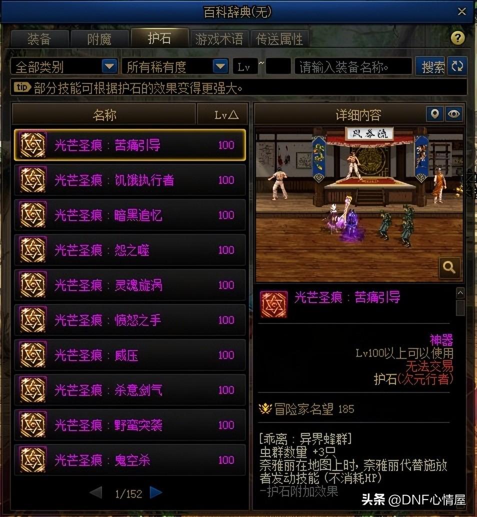 【1】新增护石词典功能。 1.12版本更新后,“百科辞典”新增了护石功能,可直接查看护石强化后的技能效果,挺人性化的调整。