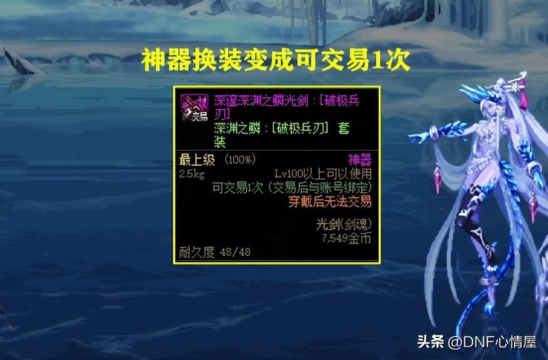 【7】神器换装可交易1次。 现阶段神器换装,无限制交易次数,在商人的操作下,热门职业价格较贵。但1.12版本更新后,神器换装调整,变成可交易1次。也就是说,商人无法进行囤货,热门职业神器换装价格,会出现“大降温”!