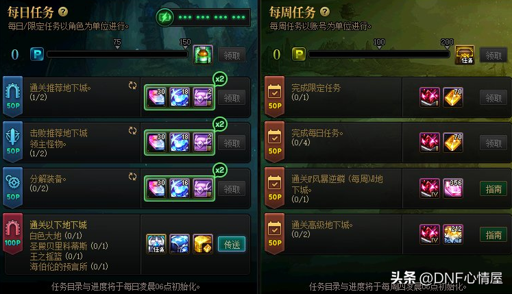 【2】周常任务优化。 每周任务在1.12版本优化减负,由“登录4天”和“完成10次每日”,变更为“完成1次限定任务”和“完成4次每日”,相比较之前,更加方便的获取周常任务奖励。