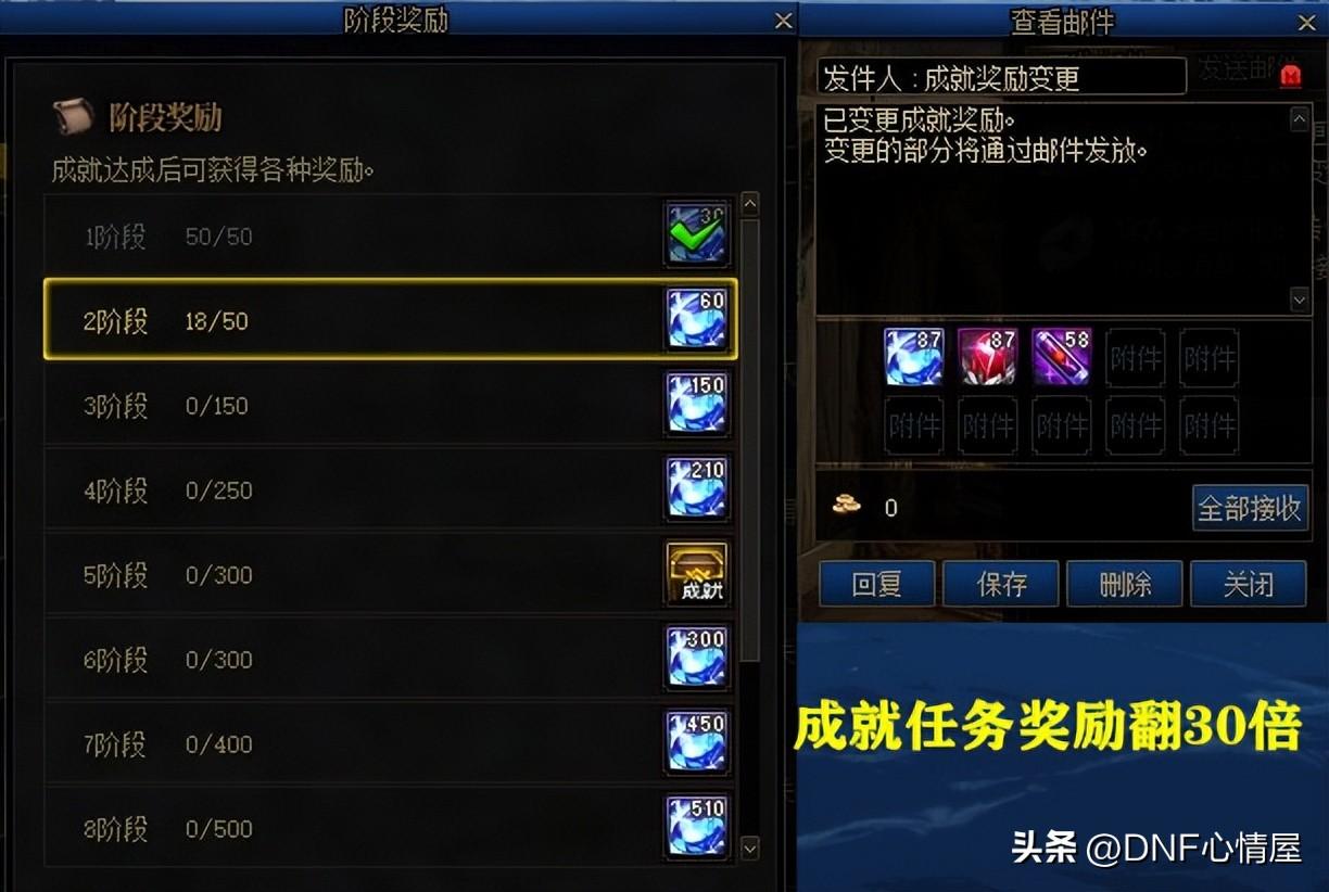 【4】成就奖励材料翻30倍。 成就奖励给的材料,确实比较稀少,当1.12版本更新后,数量会翻30倍左右。已经领取过的成就奖励,会通过邮箱的方式补齐差额,这点不需要担心。