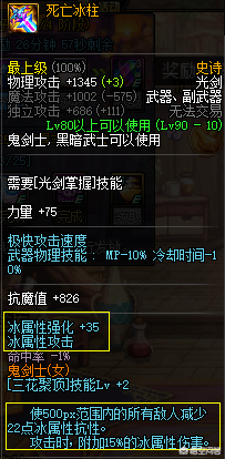 韩服鬼剑士90级史诗武器改版,其中改动的有死亡冰柱,妖刀村正以及暗影蔽日,而目前属性比较不错的世界的支点,圣剑:王者之剑没有做改动,这一次改动,妖刀彻底成为垫底,因为减防属性的删除,导致打团不再提供减防属性,而冰柱的提升我个人觉得是一个非常大的增强,可以说叫做-死亡全柱。