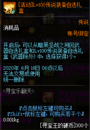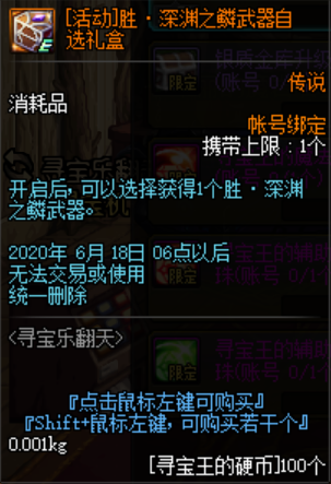 愚人节上线的礼盒内容是荒古武器装扮,出售时间是愚人节当天,定价暂不确定。