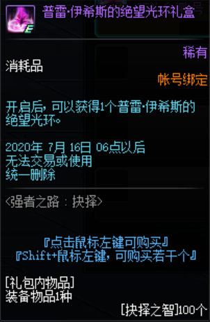 100个兑换伊希斯绝望或者是光明光环装扮。