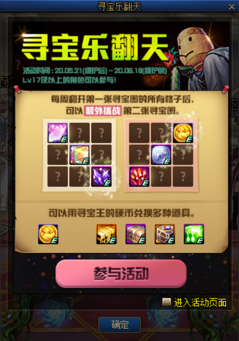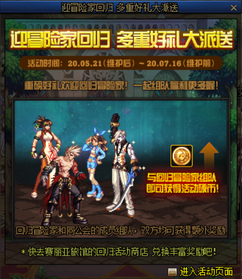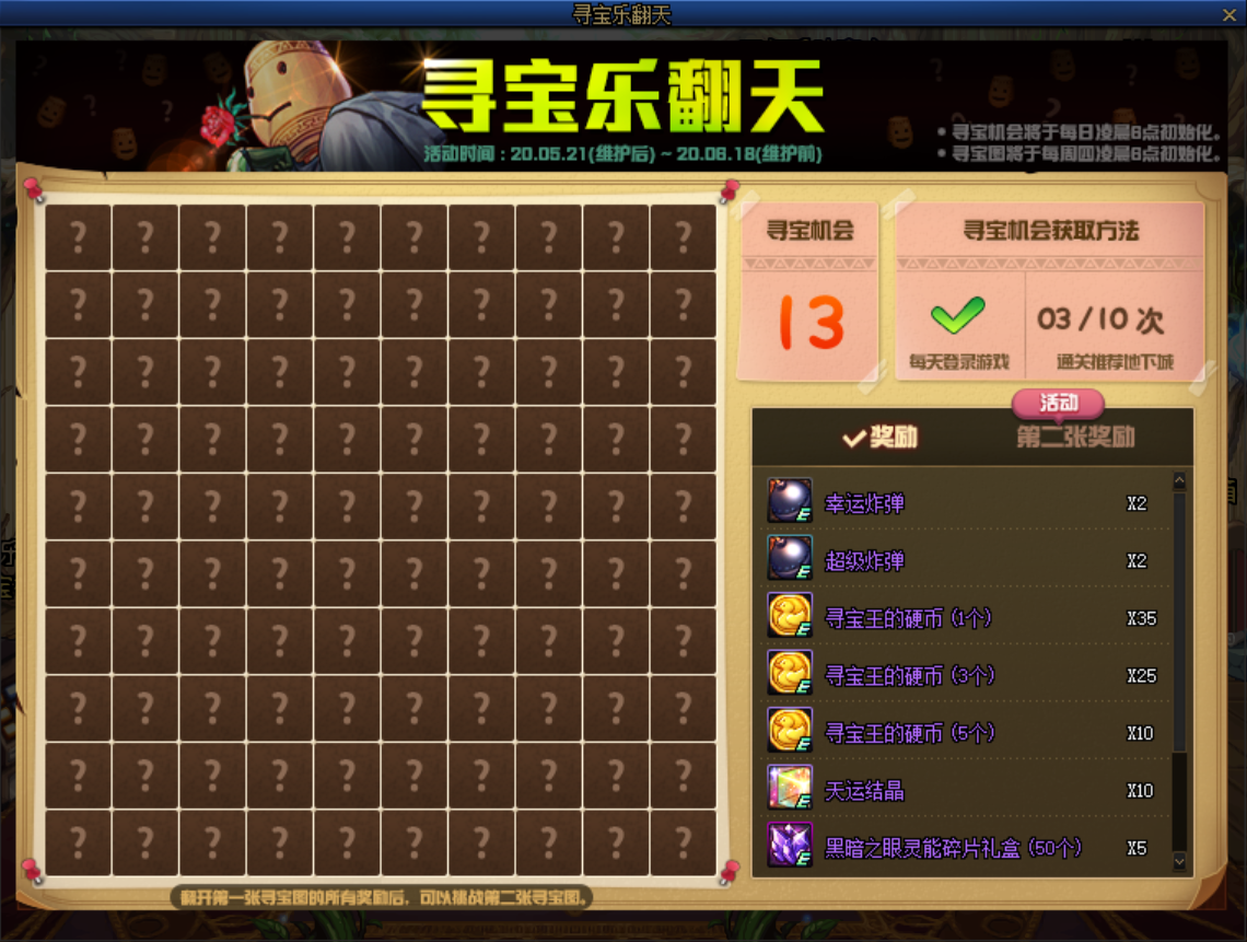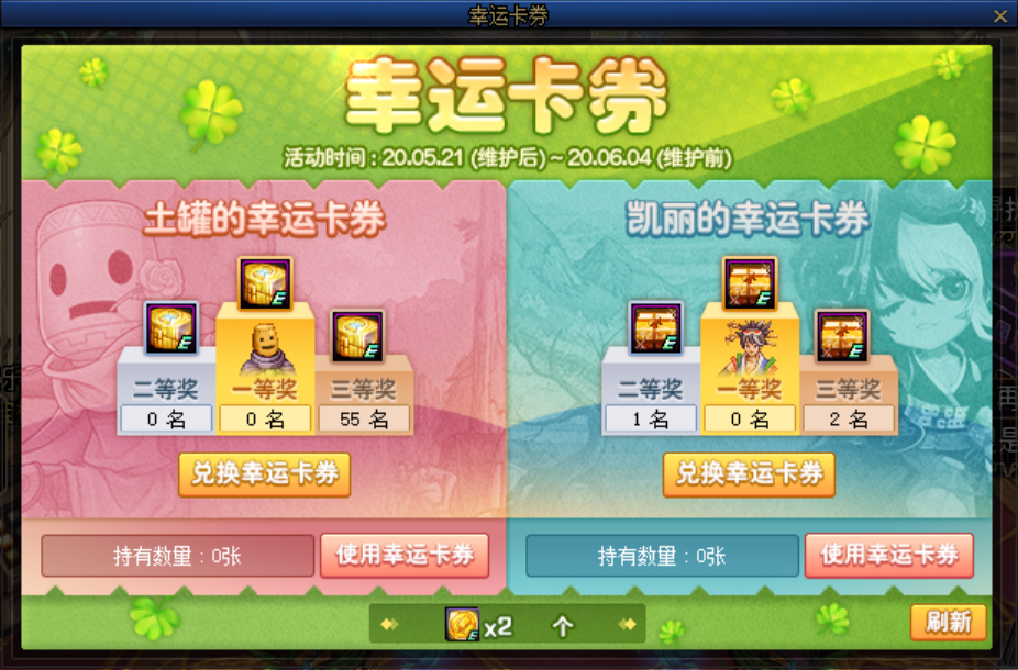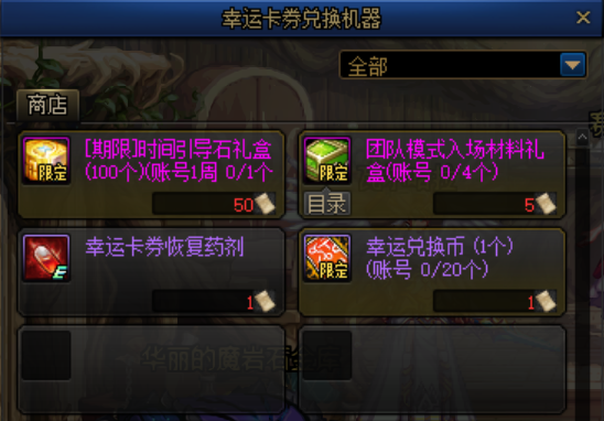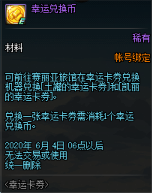 幸运卡券活动,刷推荐地下城会获得活动材料幸运兑换币。