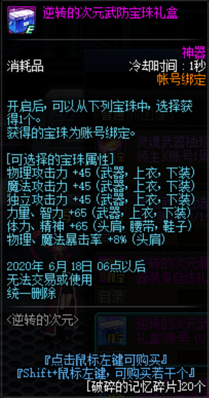20个可以兑换45点数值的上下装附魔宝珠或者8%暴击率的头肩宝珠,以及奶专属的四维宝珠。