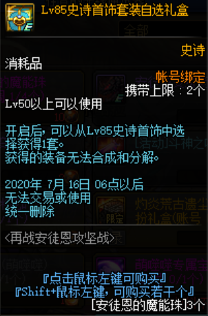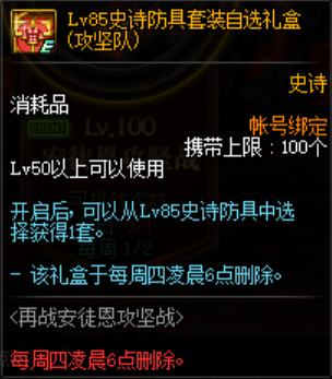 或者是100个引导石+85级史诗防具套装自选礼盒或者首饰套装礼盒,一整套的那种。