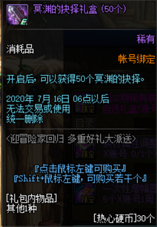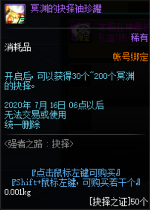 50个兑换随机30-200个冥渊的抉择。或者随机的本职业符文。