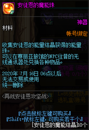 而安徒恩的魔能结晶可以在活动商店兑换奖励。