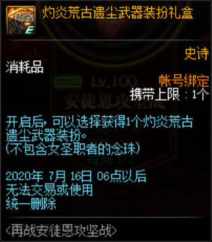 或者是灼炎荒古遗尘武器装扮礼盒。