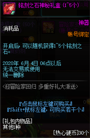 累计4次的奖励有伤害字体和铭刻之石神秘礼盒。