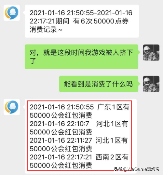 号主被洗30万点券肯定坐不住!于是找了心悦客服拿到了30万点券的去向记录,竟然是在公会里发了6次5W的红包,别说号主懵了,小伙伴们也看呆了吧。