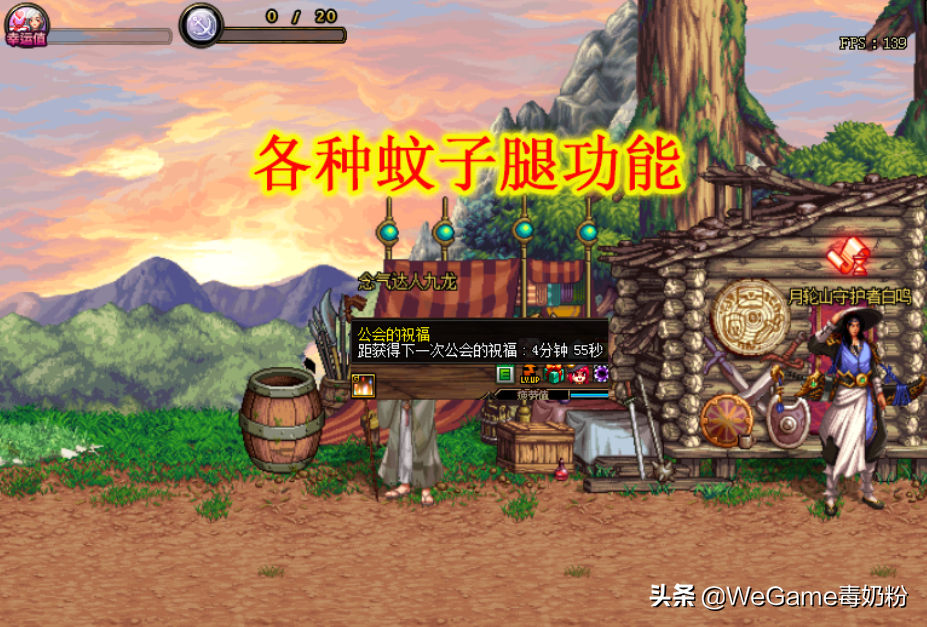 (3)新增各种蚊子腿功能。 比如公会的祝福,玩家在公会区域挂机,竟然能得贡献度,这样的BUFF厉害了。还有升级缩减功能,每当NPC升级过程中,如果有玩家进入公会大厅时,可缩短一分钟~