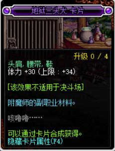 头肩腰带和鞋子附魔低于三头犬,增加30点的体力,价格也不贵,如果觉得不想花50万,那么小狗坨坨25点体力也是可以的