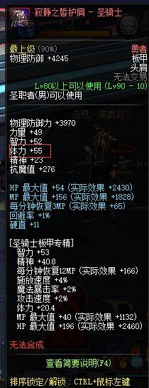 初始的肩膀是只有40点的体力提升,升级到90级之后就有55点体力,9件全部升级也得有起码大约135点的体力。