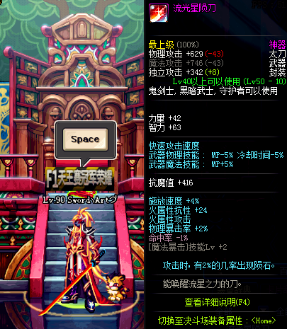 流光星陨刀,50级神器太刀。俗称流星落,火属性攻击,刀身也是火焰般的颜色,是现再最容易获取的太刀,但是在久远的版本普通人想都不敢想。