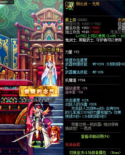 月之光芒,这把武器是50级史诗,而对于这把武器,属性已经微不足道,月之光芒不仅名字比较好听,甚至连刀身都属于湛蓝色,比较不错的一把站街武器。