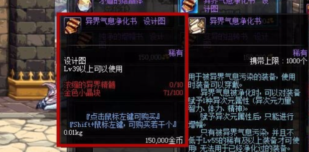用净化书就可以净化异界气息装备,净化书大概500w吧。