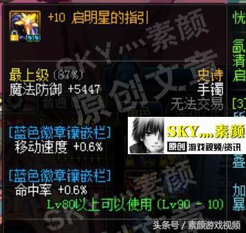 加成移动速度、命中率、跳跃力、防御力;对应鞋子、手镯