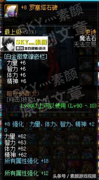 值得一提的是,白金徽章上面显示“XX职业可用”只针对它加成的技能,四维的加成是所有职业通用的。