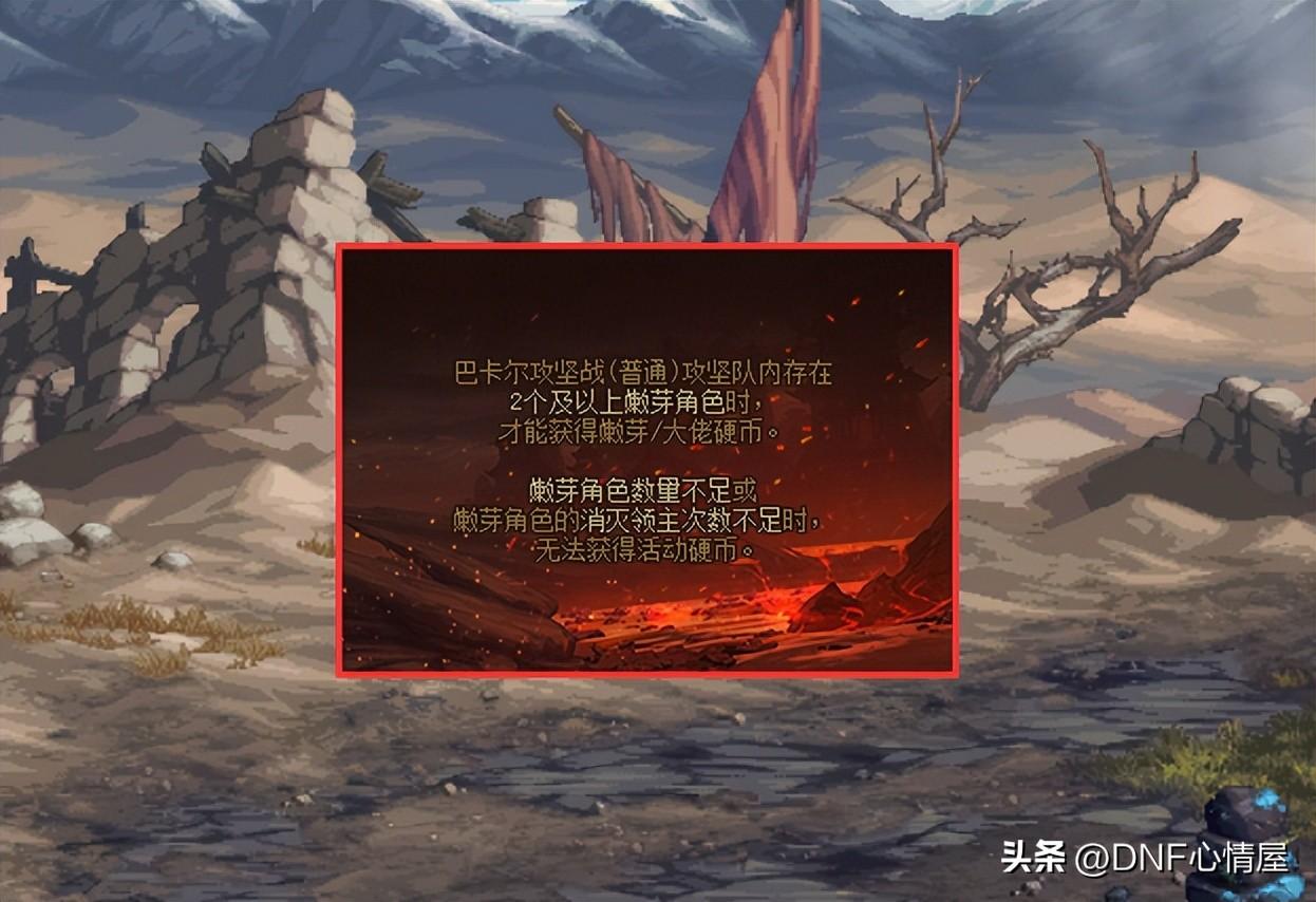且团本存在2个以上嫩芽角色,并且嫩芽角色满足消灭领主次数要求时,通关巴卡尔后,嫩芽角色才能获得“嫩芽硬币”。而同攻坚队内,满足消灭领主次数要求的大佬角色,才能获得大佬硬币。