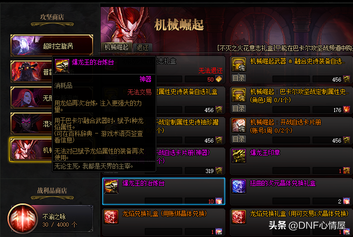 本次“老带新”活动,一共存在5周,也就是说,账绑龙焰晶体材料,可拿30个。而我们知道,在攻坚战商店内,能拿10个龙焰晶体,换1个“爆龙王的冶炼台”,来对巴卡尔融合武器,开第三个孔位。