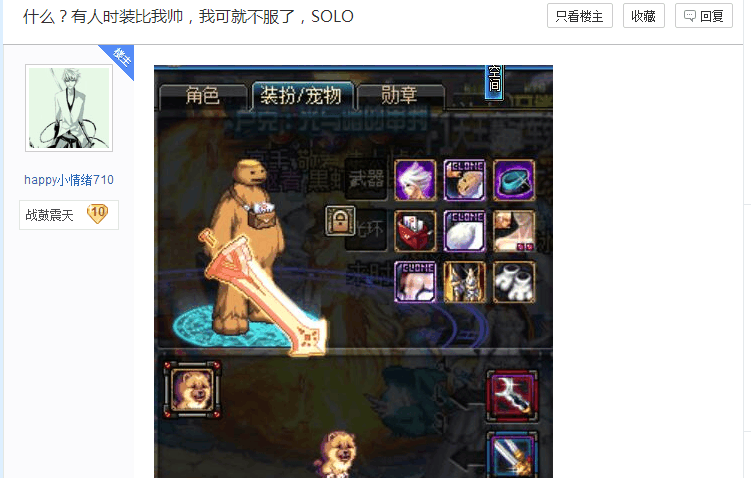 老哥们好像都有点东西,都开始秀起来了说话又好听个个都是人才。其实游戏还是不要一味的最求装备和伤害,偶尔搭配一下时装或者是PK也是很好的,不然老是纠结着出不出货人都会魔怔了。
