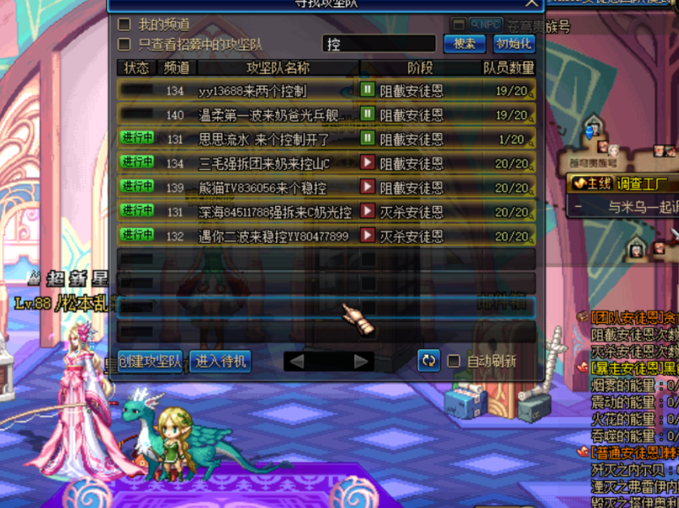 首先,我要声明的一点就是,安图恩在控制方面不是每个团都需要的,有些团长宁可多一个C补一下伤害,但是招收熟练控制的团还是有的,所以不要灰心。在这里教给大家快速找到控制团的方法,直接在队伍搜索里面输入“控”,就可以找到队伍。